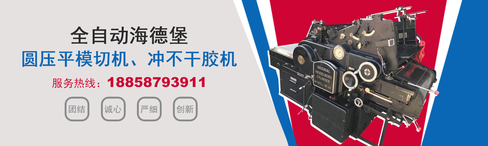 瑞安市恒柯機械廠(www.wzhkjx_com.ccfnfwj.cn)是國內專業制造銷售全自動模切機,全自動燙金機,圓壓平模切機,圓壓平燙金機,滾筒燙金機,沖不干膠機,海德堡凸印機.銷售的產品系列規格齊全,產品具有速度快,壓力均勻,套印準確等特點。
